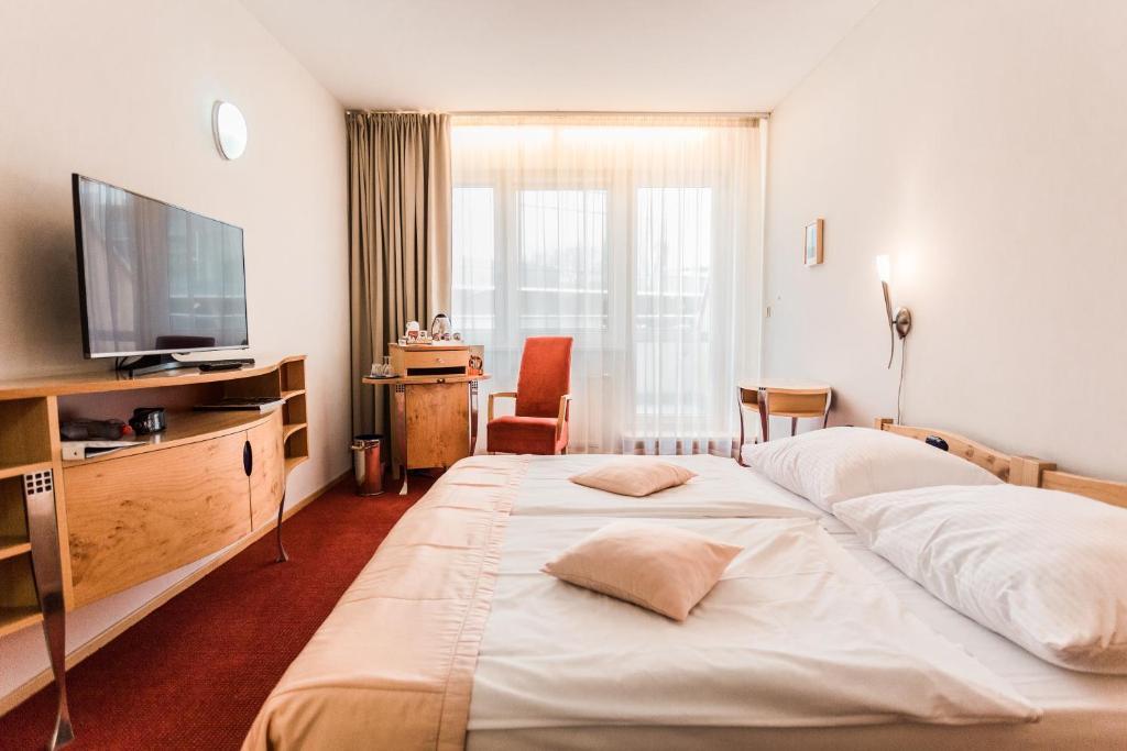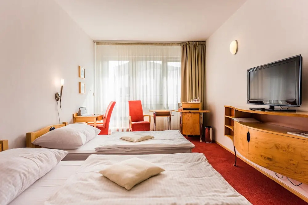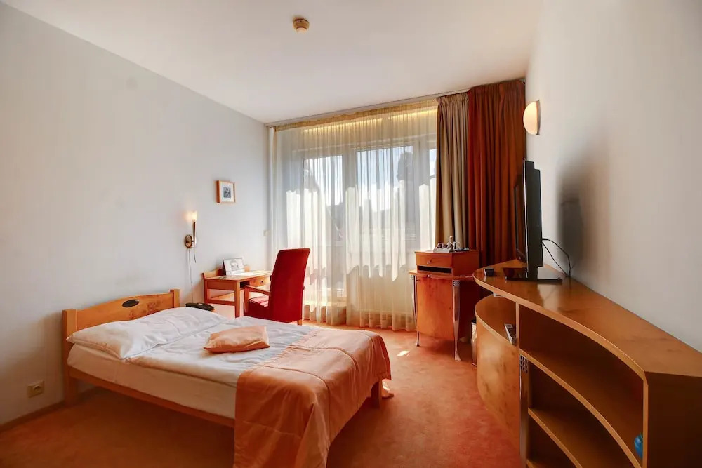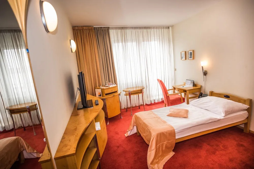 Отель довольно старомодный и нуждается в модернизации и освежении! Никаких претензий, но все выглядело немного уставшим и устаревшим. Завтрак был хорошим, хотя я был очень разочарован, когда мне сказали, что я не могу сидеть за внешними столами, чтобы поесть на солнце. Девушка на ресепшн, которая зарегистрировала меня и уехала, была очень доброжелательной и полезной; другие сотрудники были полезны, если бы спросили конкретно, но не были очень теплыми или гостеприимными. Никто не здоровался и не прощался. Как дела, когда я проходил мимо приемной. Номера были большими, с хорошим хранением и кровати были чистыми и удобными. Кондиционер был хорошим, и я спал хорошо. Услуга WiFi тоже была хорошей. Было полезно иметь холодильник в номере; хотя цены на мини-бар были дорогими, но я просто купил собственные напитки/закуски и т.д. Как одиночный путешественник расположение для меня было не так хорошо, как это довольно тихо вокруг области отеля, и я потратил много на такси, путешествуя в более оживленные районы Братиславы; хотя, если вы увлекаетесь спортом, это было бы фантастическое расположение, так как было много спортивных событий и сооружений поблизости. Был также хороший выбор общих продуктовых магазинов и ресторанов, которые выносят еду недалеко, что было полезно для ночей, когда я не гулял. Иметь балкон было здорово, но был плантатор вне моей комнаты ( 204 ), который был запущен и имел мертвые растения и сорняки в нем и стены были серыми с возрастом. Балконная мебель была старой. Занавеска, закрывающая окно и дверь балкона, была обшарпана. Я бы не рекомендовал здесь, что обидно, потому что не потребуется многого, чтобы сделать это действительно супер место.