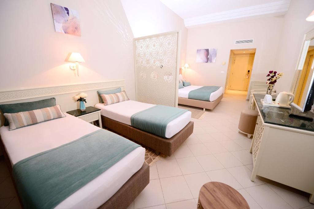 Как пара мы приехали в обед, и нас попросили заполнить некоторые анкеты, выпив дополнительный сок. Я чувствовал, что мы делаем работу администратора за них... Затем мы зарегистрировались в нашем номере, который был номером 3021, выходящем на главный вход. У нас был шум от главной дороги, но не о чем волноваться. Бассейн был чрезвычайно чистым и большим с большим количеством шезлонгов. Чистые полотенца были доступны каждый день с небольшим депозитом в 10 фунтов стерлингов . Бар у бассейна был в порядке поданы закуски и напитки (алкоголь очень разбавлен) . Основные развлечения были вокруг зоны бассейна. Персонал очень много работает ежедневно! Мы предпочитали спуститься на пляж, где было намного спокойнее. Два парня, которые там работают, всегда были внимательны, они не мешали весь день убирать постели людей до уборки и поддерживать чистоту на территории. Еда тоже была намного лучше, бургеры, пицца & крепс. Единственным минусом для нас была еда. Да, вы не будете голодать, но мы просто нашли это настолько грубым и тот факт, что мы были раздавлены, как сардины в нашем столе, мы с трудом проникли и вышли. Поэтому мы ели большую часть нашего пребывания вечером над дорогой. Поэтому еда была очень вкусной и чрезвычайно дешевой. Кроме того, развлечение было не для нас, поэтому мы оплатили пачку карт и сидели каждую ночь в спорт-баре. Мы тоже ненавидим футбол, так что да, выбор невелик Я бы вернулся в Тунис, так как люди такие дружелюбные и очень много работают, но я думаю, что мы попробуем другой отель в следующий раз.