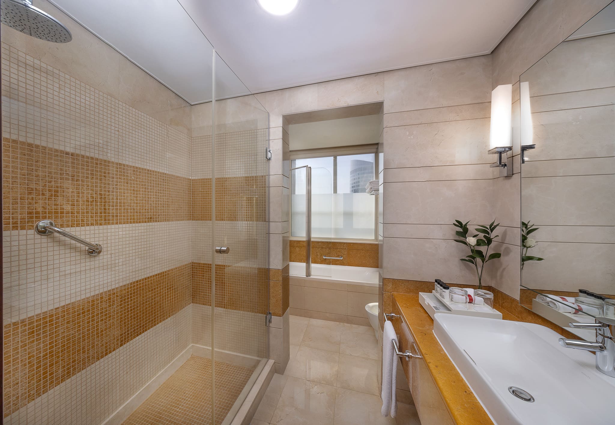 Отель великолепный. Очень красивый ресторан. На завтрак все вкусно. Много фруктов и овощей. Есть йогурты, сметана. Мед обалденный. Рыба холодного копчения. Омлет, яйца вареные, жареные. Чисто. В номере убирались хорошо. Расходники все выдавались каждый день, полотенца менялись тоже каждый день. И ставили по 4 бутылки воды по 0.5 каждый день. Розетка на номер только возле одной тумбочки и ВСЕ!!!! Второй минус: нет шторки в ванной, а небольшая пластиковая панель и, когда моешься под душем, вся вода на полу ванной. На рецепшин всегда с готовностью помогают. Возят в моллы и аутлеты. Есть трансфер на пляж Zero gravity & Barasti Beach Club в 10.30 только три дня: понедельник, вторник, чктверг. Мы на пляж с отеля ехали одни, нас отвезли на джипе. Пляж классный. Есть зонтики, полотенца, душ, джакузи, бассейн, раздевалки, ресторан. Можно делать заказ прям к лежакам. Весь день играет долби-музыка. Для нас это был отрицательный момент. Песок чистый, белый, мелкий. Вода теплая и чистая. Обратно в 15.30 тоже отвезли на джипе. Норм. Пока поплаваешь, то се, уже и время. Второй раз на пляж поехали в понедельник, был автобус, попали в жуткую пробку, ехали около часа, хотя в первый раз доехали за 15 мин. Возле отеля всегда есть такси, бежевые, которые ездят по счетчику. Работает приложение Яндекс go. Вызывали по нему такси. Метро рядом. Бассейн в отеле на 18 этаже. Чистый, не маленький. Глубина 1.55 см. Лежаков достаточно. Всегда были свободные, когда приходили. Полотенца выдавали. Есть рядом джакузи, душ. Рядом СПА. Массаж делают хорошо. Рядом, за отелем через дорогу кафе Spotlight. Вкусно и цены нормальные. Чувствовали себя как дома. Отель рекомендую.